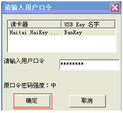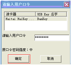 點(diǎn)擊“確定”后提示輸入USBKEY的口令: